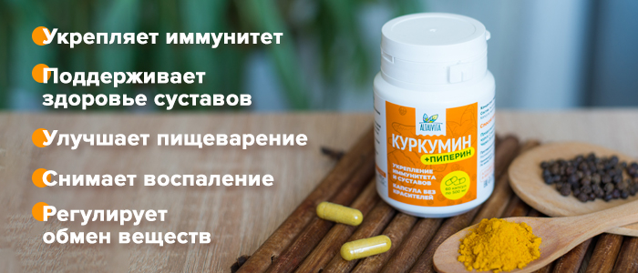 Помимо иммуномодулирующего эффекта, куркумин помогает: