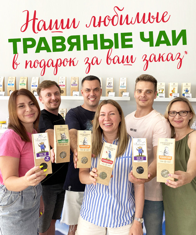 Это ещё не всё! Наши постоянные покупатели знают, что история Алтайвита началась с травяных сборов. И до сих пор чаи с алтайскими травами – наша гордость. Они завоевывают золотые медали на всероссийских выставках, их знают по всему миру, и вообще, в них вся любовь и душа нашей компании, которыми мы рады делиться!