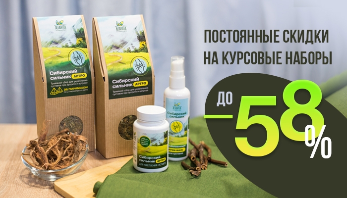 Продукты линейки "Сибирский сильник" не участвуют в распродаже, но на курсовые заказы действуют ПОСТОЯННЫЕ СКИДКИ до 58%!