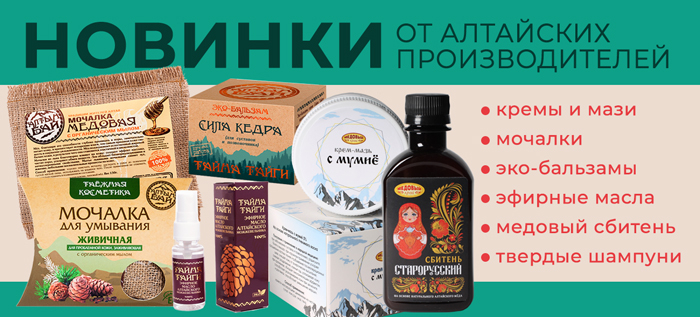 Товары по уходу за телом от Алтын-Бай. Компания располагается в республике Алтай, где и производит натуральные товары на основе местных трав