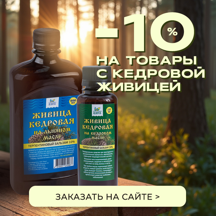 Кедровая живица — это смола сибирского кедра, издавна используемая в народной медицине как мощное природное средство для оздоровления организма. Она очень популярна среди тех, кто придерживается натуропатии, ЗОЖ и ищет альтернативу синтетическим препаратам. И сегодня мы предлагаем разобраться, чем так полезна живица, и заказать продукты на её основе с выгодой 10%.